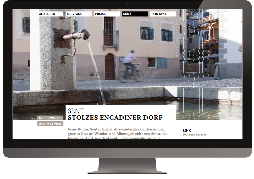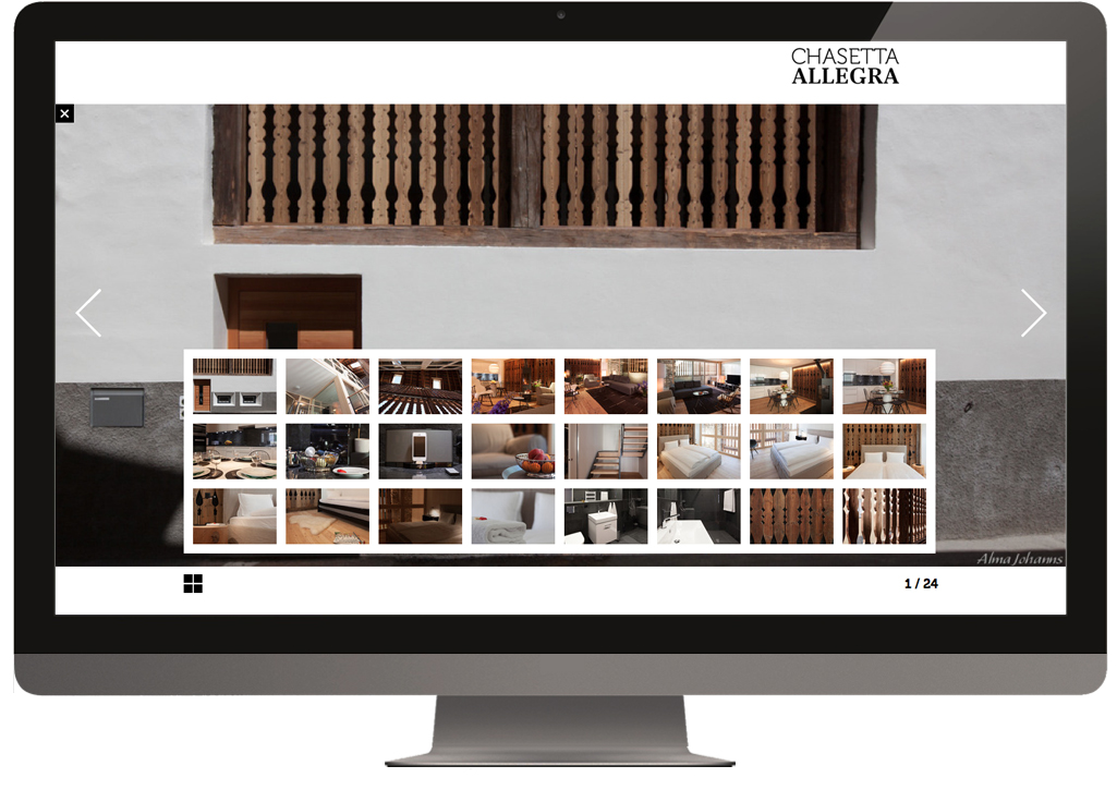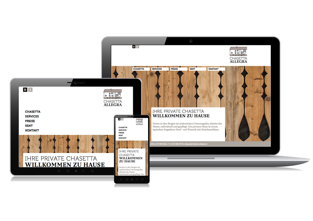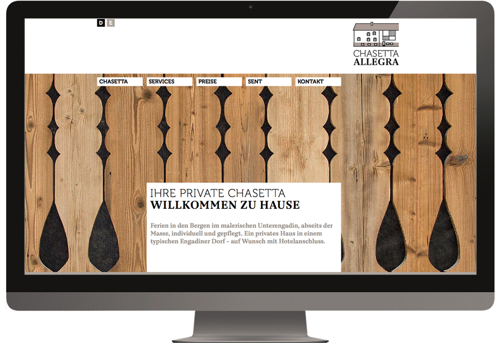 Die Chasetta Allegra ist ein privates Haus im Unterengandiner Dorf Sent und bietet alle Annehmlichkeiten eines modernen Ferienhauses. Der Internetauftritt wurde von Grund auf konzipiert und entwickelt. Das Layout der Webseite basiert auf dem Standard von HTML5 / CSS3, animiert mit Hilfe von jQuery. Als CMS wurde das hauseigene Verwaltungs-System verwendet, das es ermöglicht, Inhalte einfach und selbstständig zu pflegen.