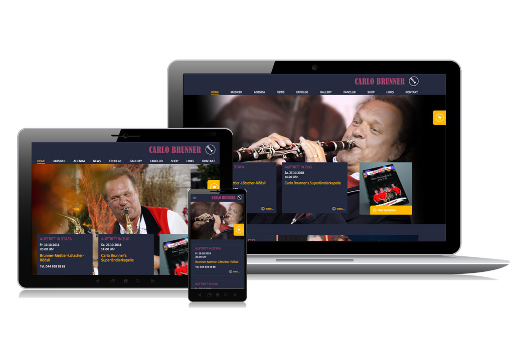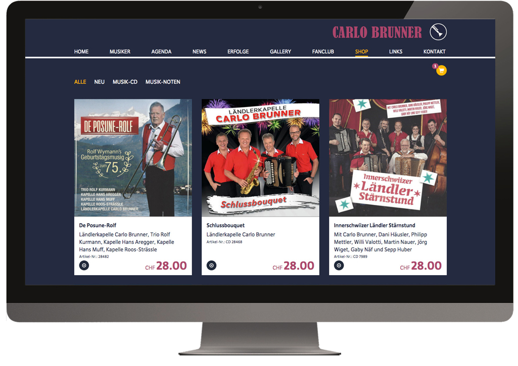 Für den Schweizer Interpret und Komponist Carlo Brunner konnte die Software Fabrik in Zusammenarbeit mit Milano Grafik die Webseite komplett überarbeiten und den massgeschneiderten Webshop integrieren. Im Webshop können nebst CDs auch Musikbücher und Musiknoten im Einzelstuck bestellt werden. Der Shop wurde auf die persönlichen Bedürfnisse von Carlo Brunner und seinem Team abgestimmt.