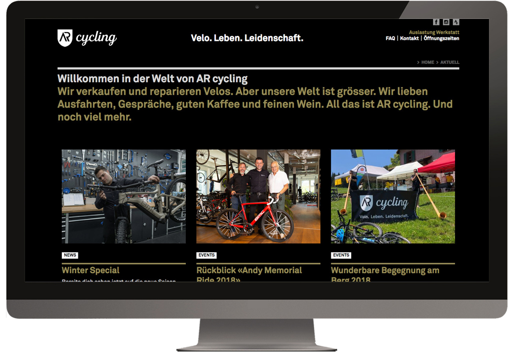 AR cycling verbindet Velo mit Kultur und ist der Treffpunkt am Obersee. Die einzigartige und massgeschneiderte Webseite von AR cycling widerspiegelt die Werte des Veloshops.